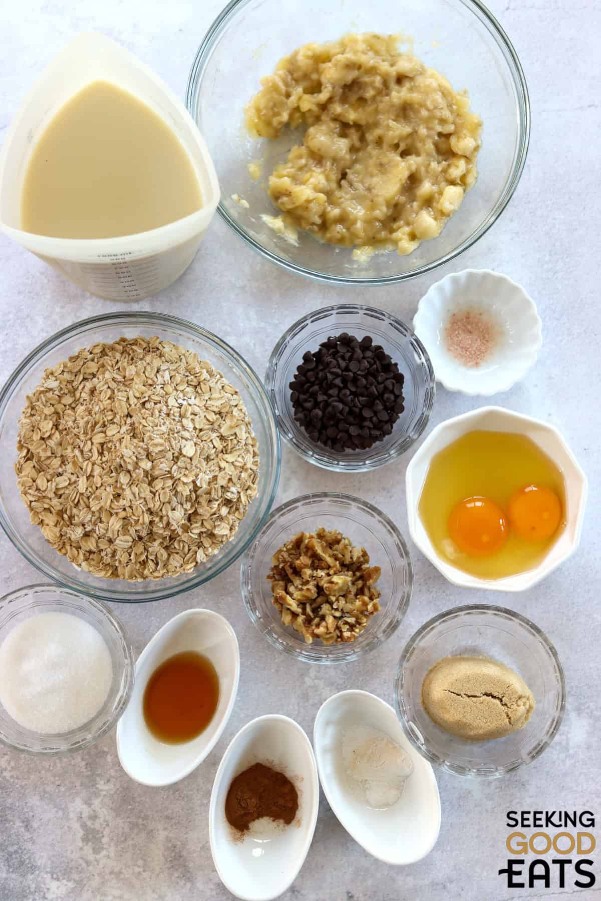 Baked oatmeal banana chocolate chip ingredients.