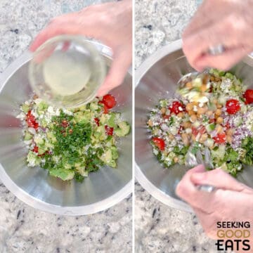 - For extra flavor, let the chickpeas marinate in the lemon dressing for 10 minutes before mixing everything together.